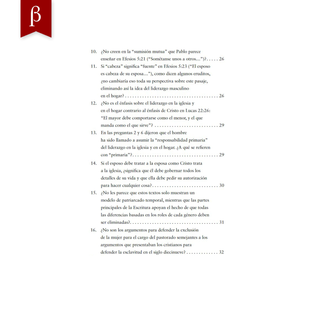 Dirigiéndonos a la Palabra de Dios, John Piper y Wayne Grudem nos brindan en este libro respuestas precisas y claras en cuanto a las preguntas que muchas personas tienen sobre el papel del hombre y de la mujer en los roles en la iglesia y en el hogar. Este libro puede ser usado como un manual para que cualquier persona inquieta conozca lo que la Biblia realmente dice sobre estos temas.